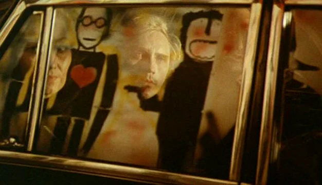 Toby Dammit The limousine taking Toby from the airport to the hotel presents a parade of images including some violent graffiti with a gun and a heart that we see on the glass reflection.