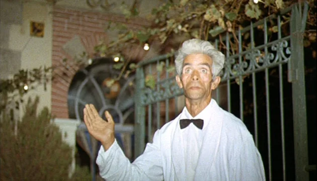 Toby Dammit A waiter seen momentarily with the lights of a moving Ferrari- is clearly real but posing as a statue or a cut-out. Strangely he also resembles a religious figure in the throws of revelation - or paralysis - but the moment of mystery has passed.